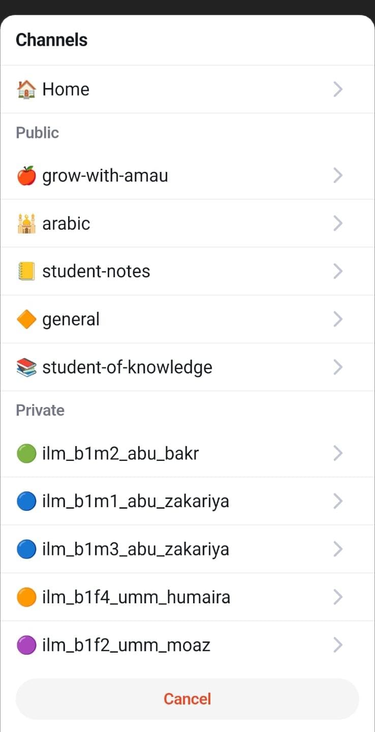 Private Channels: Restricted to invited members. Ideal for specialised topics, mentorship circles, or focused study groups.